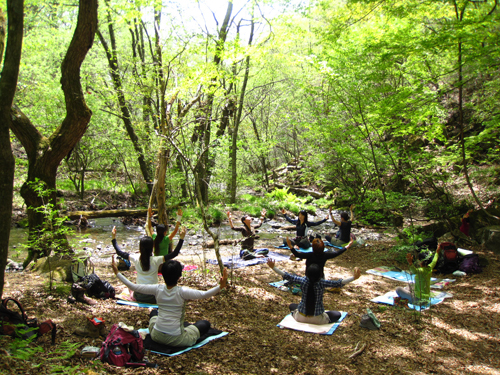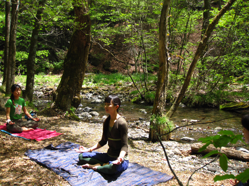 清流と緑に包まれながら約1時間の瞑想とリラックスヨガ