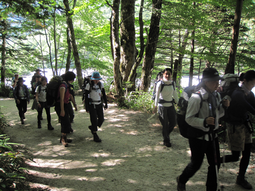 の12名は徳澤-槍見台(蝶ケ岳コース)往復の軽トレッキング