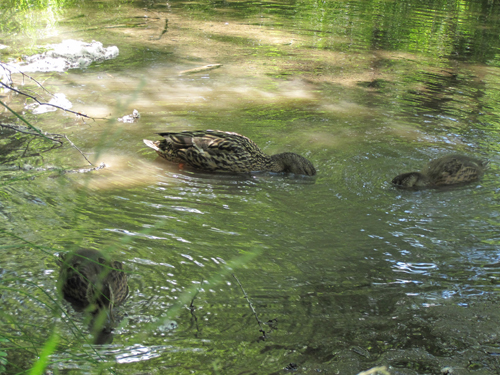 明神で出会ったカモの親子。山にはたくさんの愛しい命が息づいています