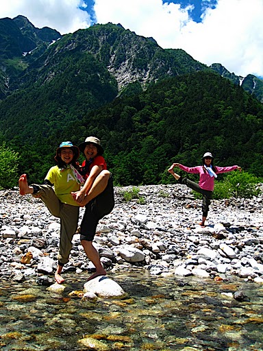 途中、河原でヨガ! 梓川の水がひんやりと冷たく、