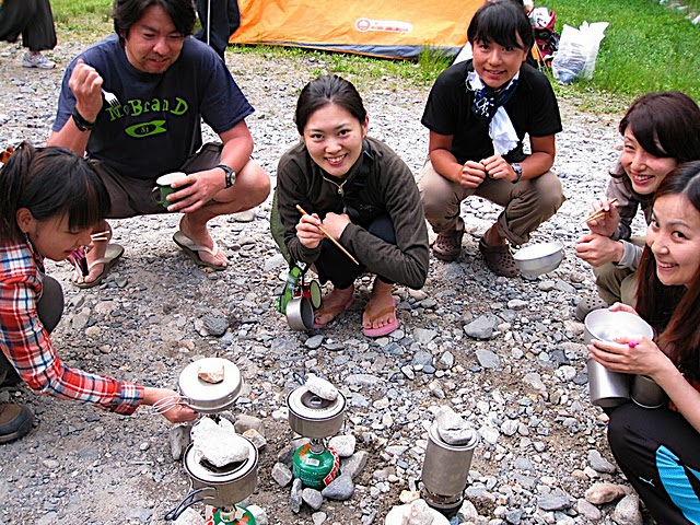 さてさて、ヨガでリラックスした後はアウトドアクッキングの時間です。コッヘルでの米炊きはみんな初めて。失敗しないように選抜メンバーが見守ってます