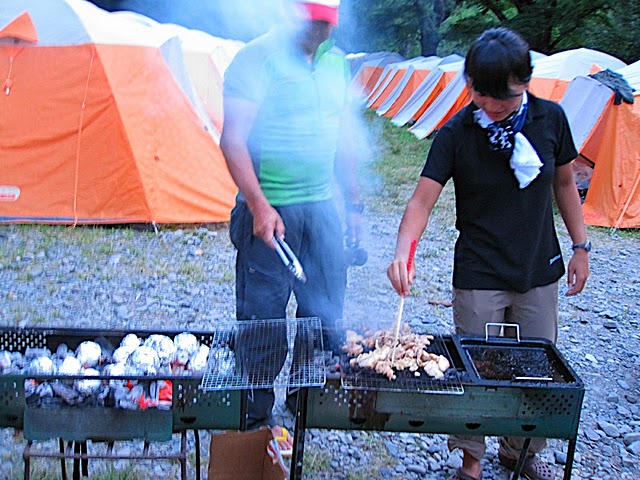 徳澤園さんの協力がなければ到底実現できなかったバーベキュー。鶏肉、ウィンナー、じゃがいも、アスパラ…。山でこんな贅沢…いいんですか?