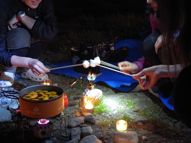 すっかり日も暮れて、締めはデザートの焼きマシュマロとホットワイン。