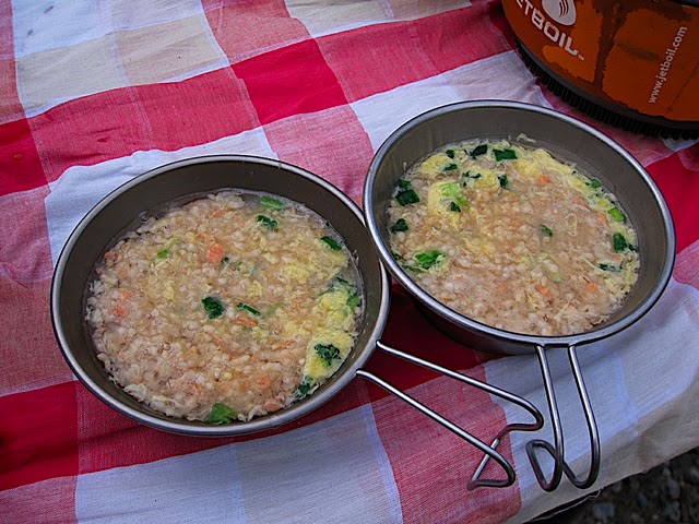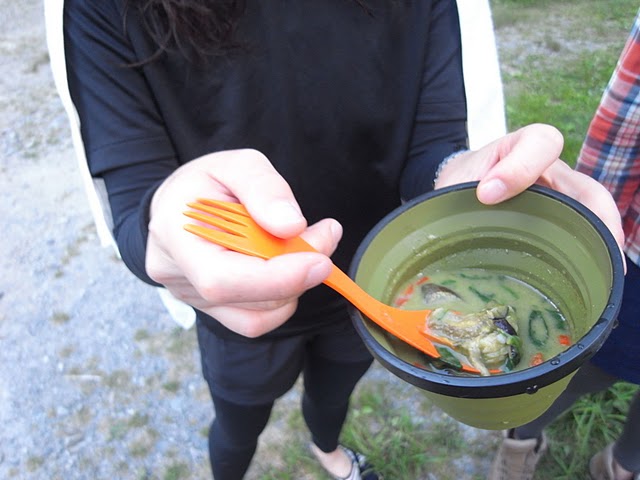 炊きたてご飯は、フリーズドライのカレー(アマノフーズ)でいただきました。ちなみに、このグリーンカレーは海老が入っていて超美味! 一度お試しを