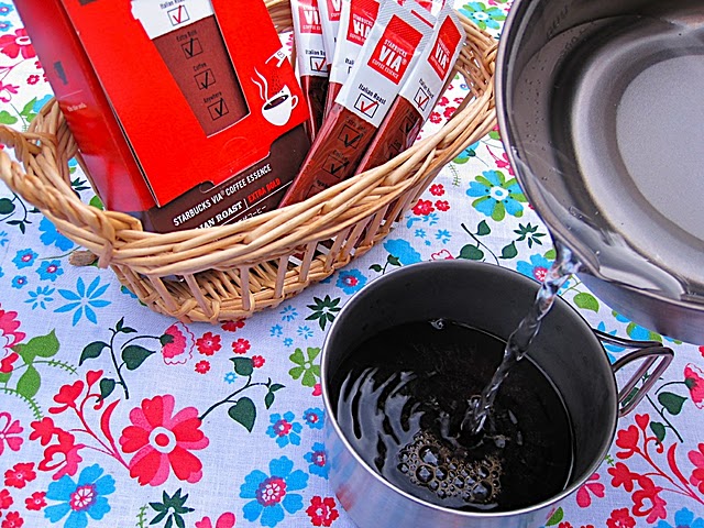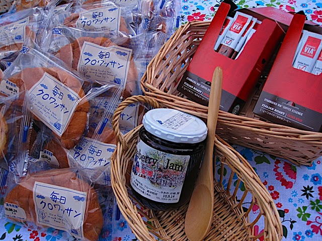 朝食は、お湯を注ぐだけでOKの発芽玄米雑炊。卵付・鮭身入りと豪華でボリューム満点。アマノフーズさん、ごちそうさまでした! コモのクロワッサンには徳澤園の特製ブルベリージャムが絶妙にマッチ! ジャムは徳沢土産としてもおすすめです。 コーヒーは、ゴミが出ないスターバックスのVIA。インスタントとは思えない味わいに一同感動!