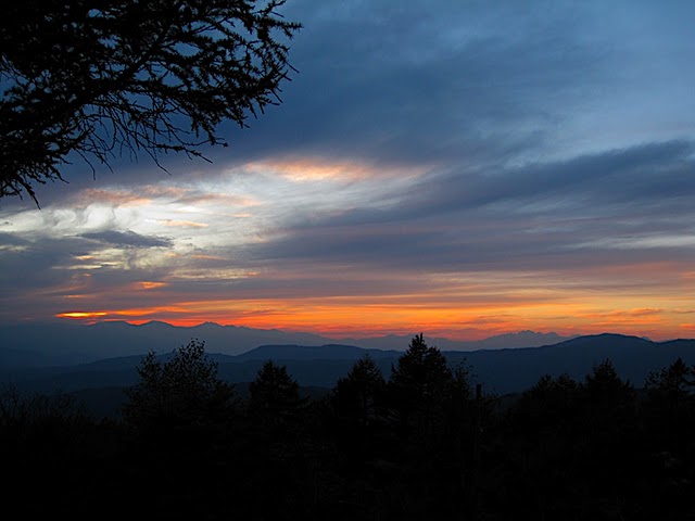 北アルプスの稜線に沈む夕陽